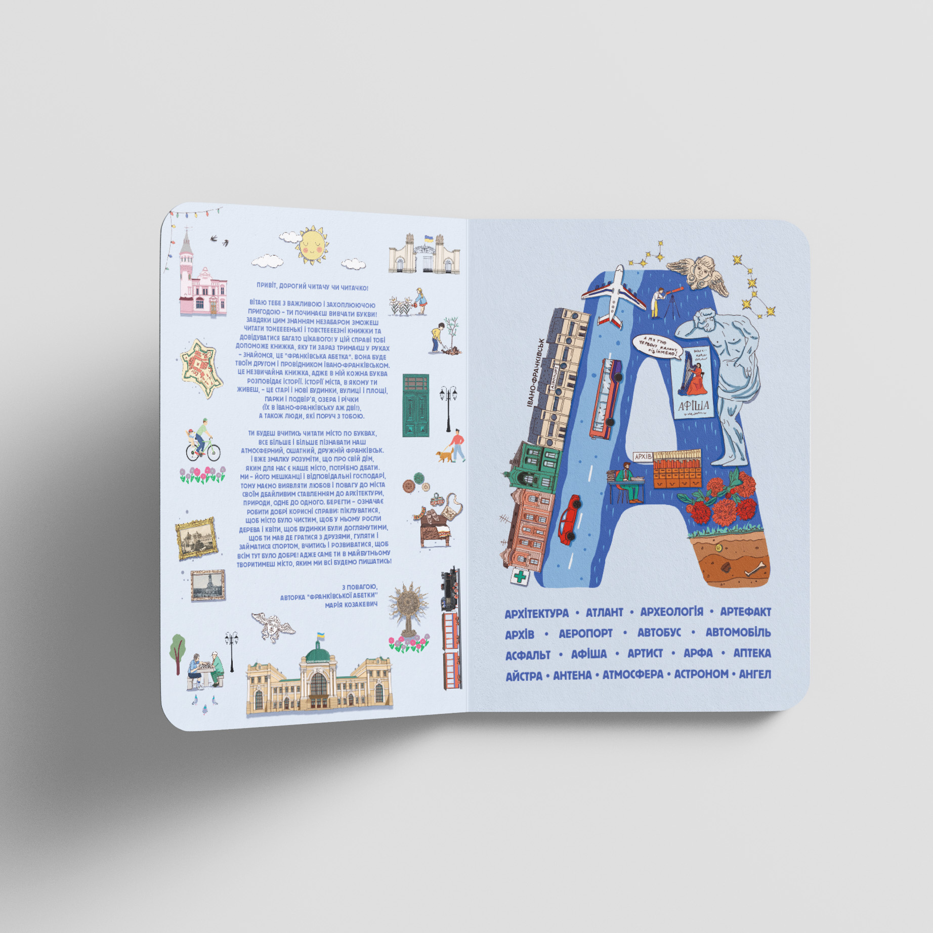 Ви будете вчитись читати місто по буквах, все більше і більше пізнавати наш атмосферний, ошатний, дружній Франківськ. І вже змалку розуміти, що про свій дім, яким для нас є наше місто, потрібно дбати. Ми – його мешканці і відповідальні господарі, тому маємо виявляти любов і повагу до міста своїм дбайливим ставленням до архітектури, природи, одне до одного. Берегти – означає робити добрі корисні справи: піклуватися, щоб місто було чистим, щоб у ньому росли дерева і квіти, щоб будинки були доглянутими, щоб ви мали де гратися з друзями, гуляти і займатися спортом, вчитись і розвиватися, щоб всім тут було добре! Адже саме ви в майбутньому творитимете місто, яким ми всі будемо пишатись!