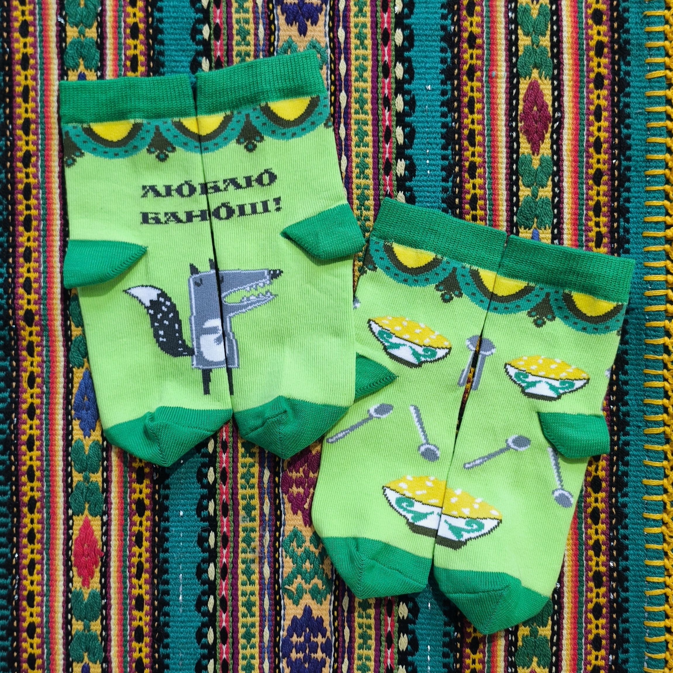 Ми створили серію дитячих шкарпеток «Мамо, я в Карпатах!». Вигадували її з великою любов’ю до дітей і до Карпат та з щирим бажанням прививати повагу до рідного краю. Яскраві та колоритні шкарпетки з тваринками ми прикрасили етномотивами, приправили гумором і додали баношу та афин – як ж без них! Аби розповісти маленьким українцям про красу та культуру гір і зробити їх дослідження ще цікавішими і пізнавальнішими! Мандруйте Карпатами у веселих шкарпетках від berehty.if.ua